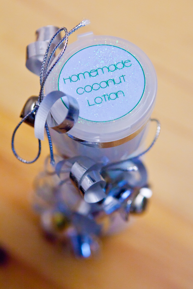 Ok, so this gift isn’t exactly edible, but it uses an edible ingredient, so I figured I blog about it! I did these this year and loved the way they turned out! It’s homemade coconut lotion. Simple, affordable and pretty- they make the perfect small gift!